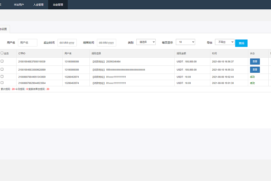 出海源码英文版虚拟币投资系统/USDT充值
