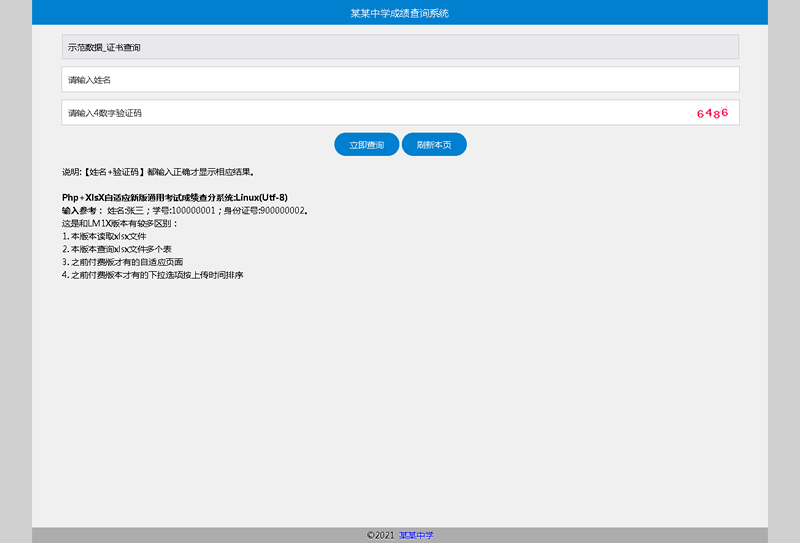 Php+XlsX自适应新版通用考试成绩查分系统。