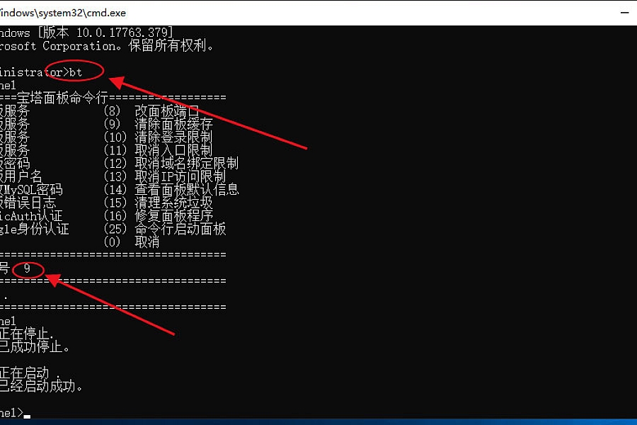 2:(1)Linux进入SSH,输入bt,选择9,清空面板缓存
